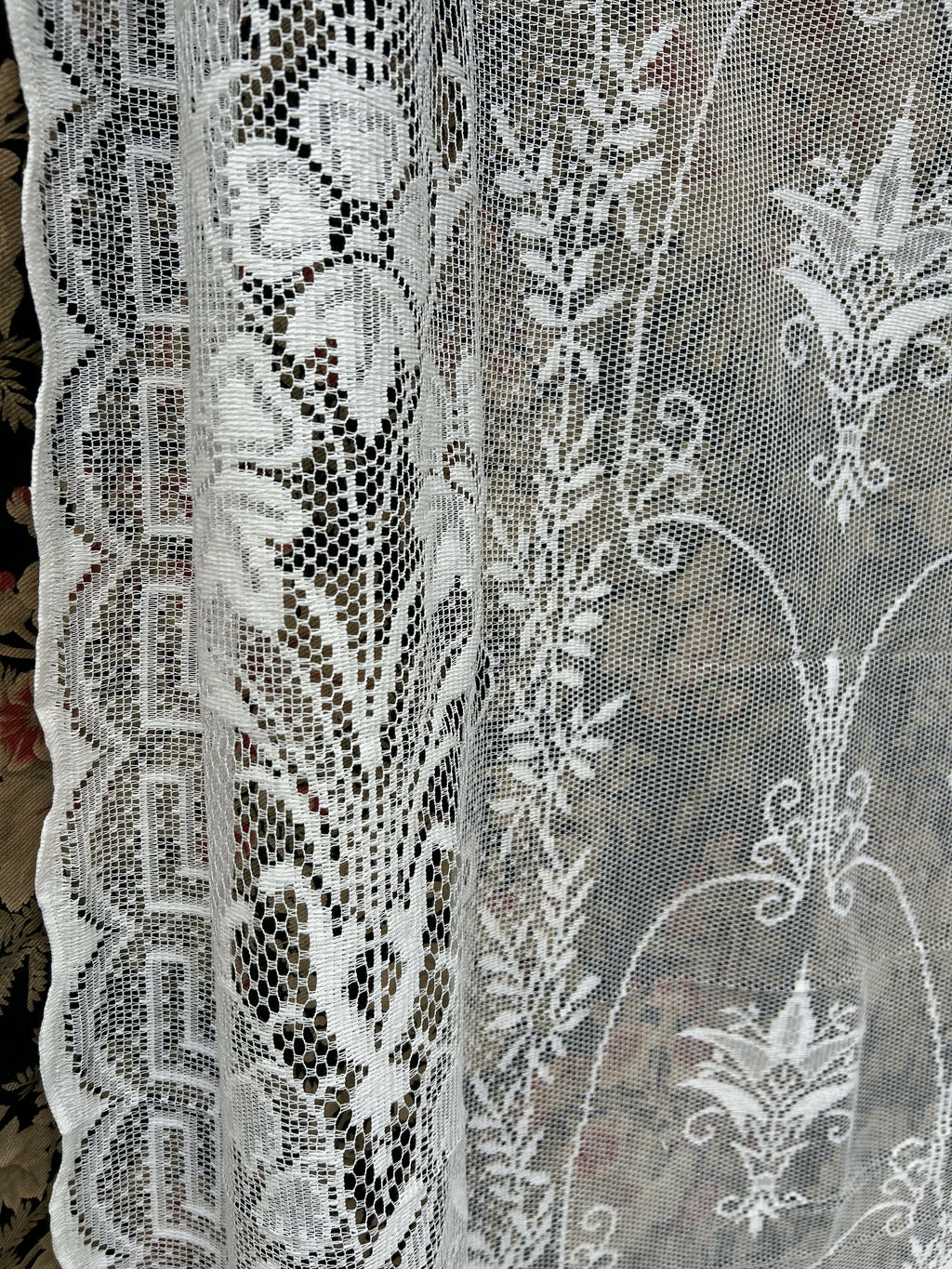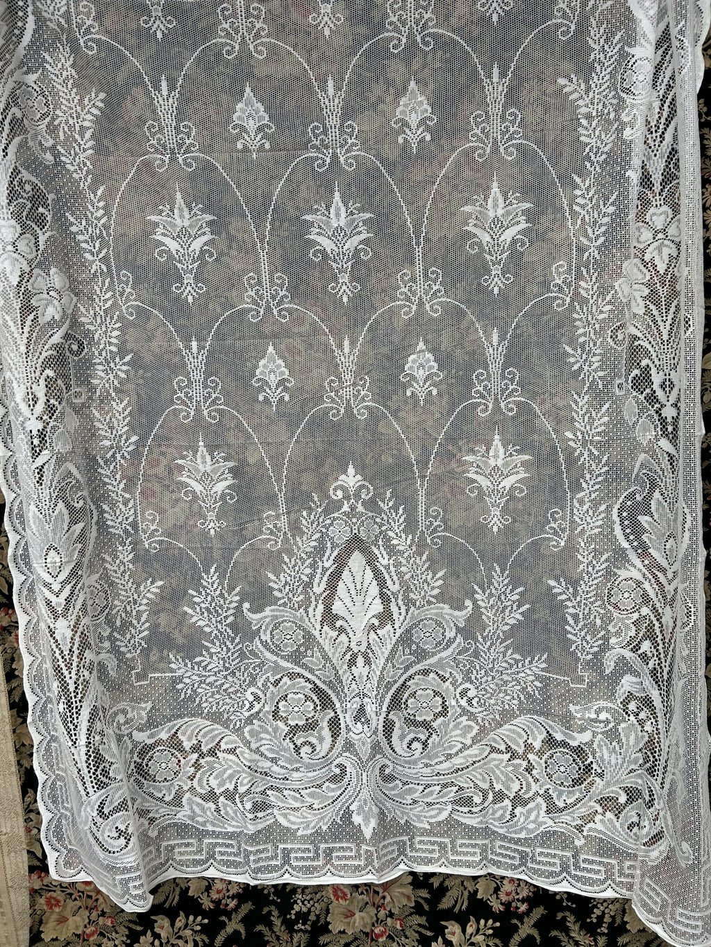 A very beautiful floral design typical of the Victorian period with trademark Neo grec border and flowers. The design dates to circa 1900, made on the original Nottingham lace looms