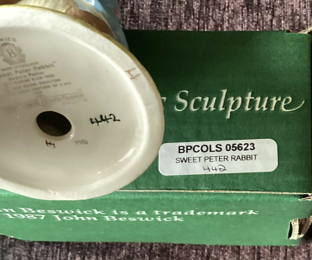 Beswick Beatrix Potter limited edition Figurine Beswick Beatrix Potter figurine Beswick Sweet Peter BP10 This was made in England in 1999 in a special edition of 2950 WITH BOX AND CERTIFICATE In excellent condition with no cracks chips or restoration