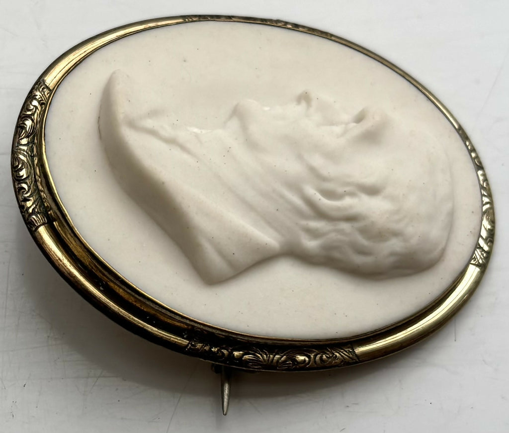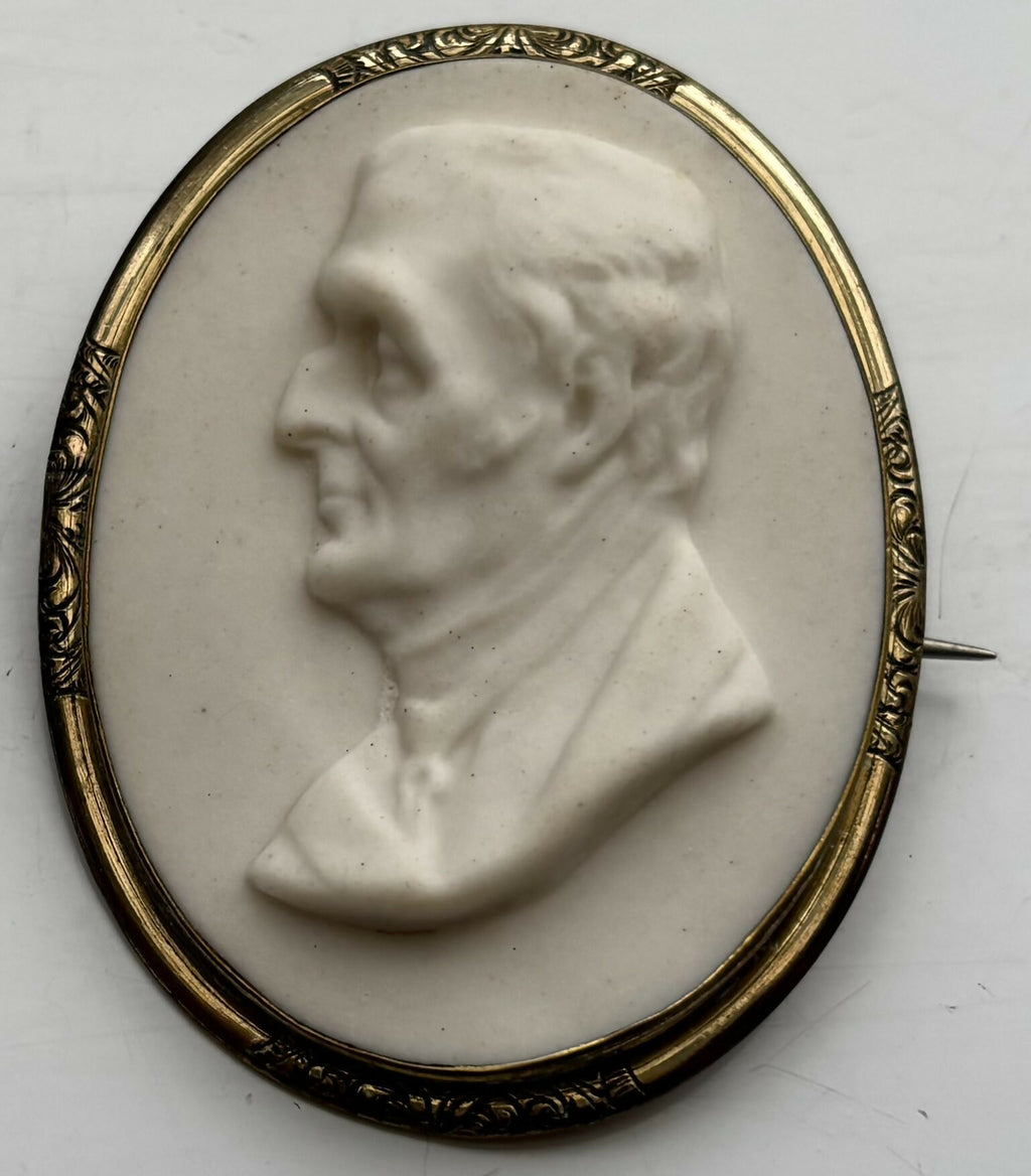 Duke of Wellington Parian Bas-Relief Portrait Plaque Brooch, After William Boyton Kirk RHA, for W. H. Kerr & Co. Circa 1852.