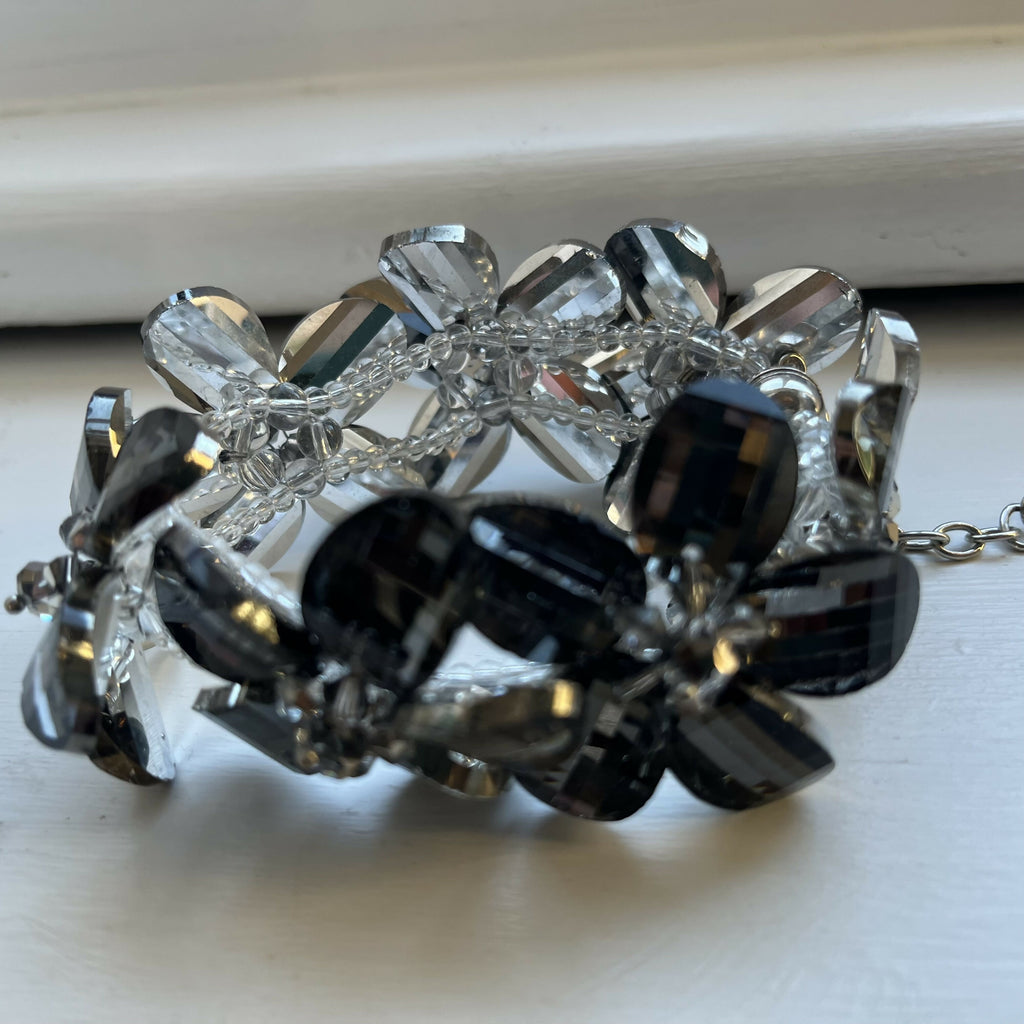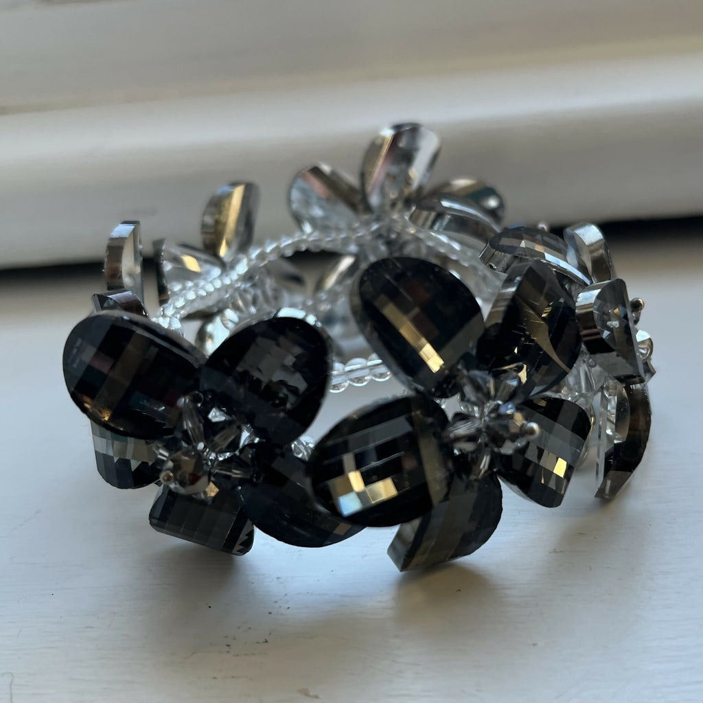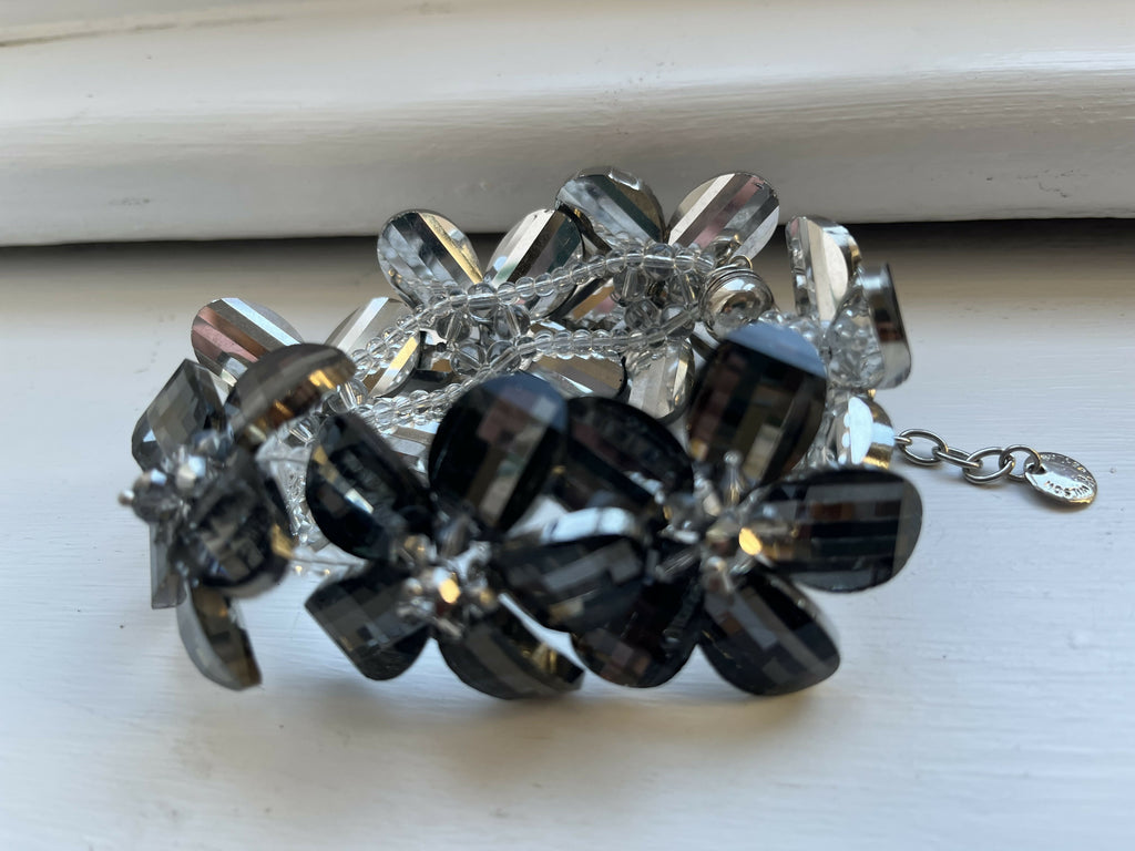 Butler and Wilson Vntage Black Grey Glass Flower Bracelet