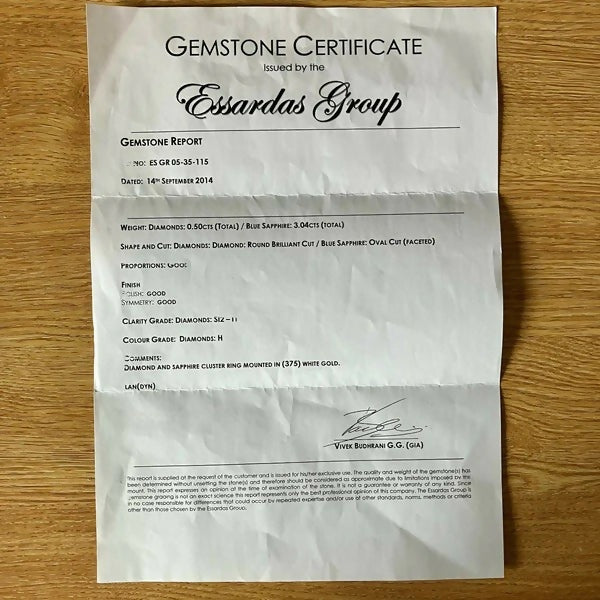 Note: The ring is not hallmarked but comes with a gemstone certificate from 2014 done by Essardas Group.