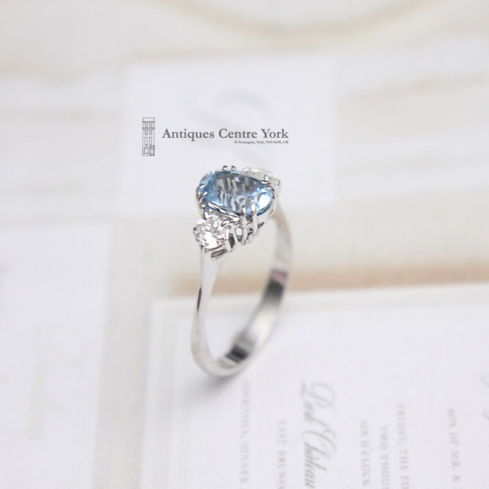 18ct White Gold Aquamarine & Diamond 3 Stone 0.35ct