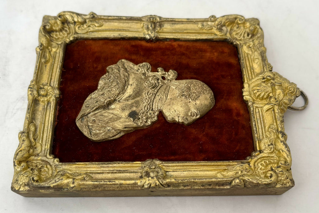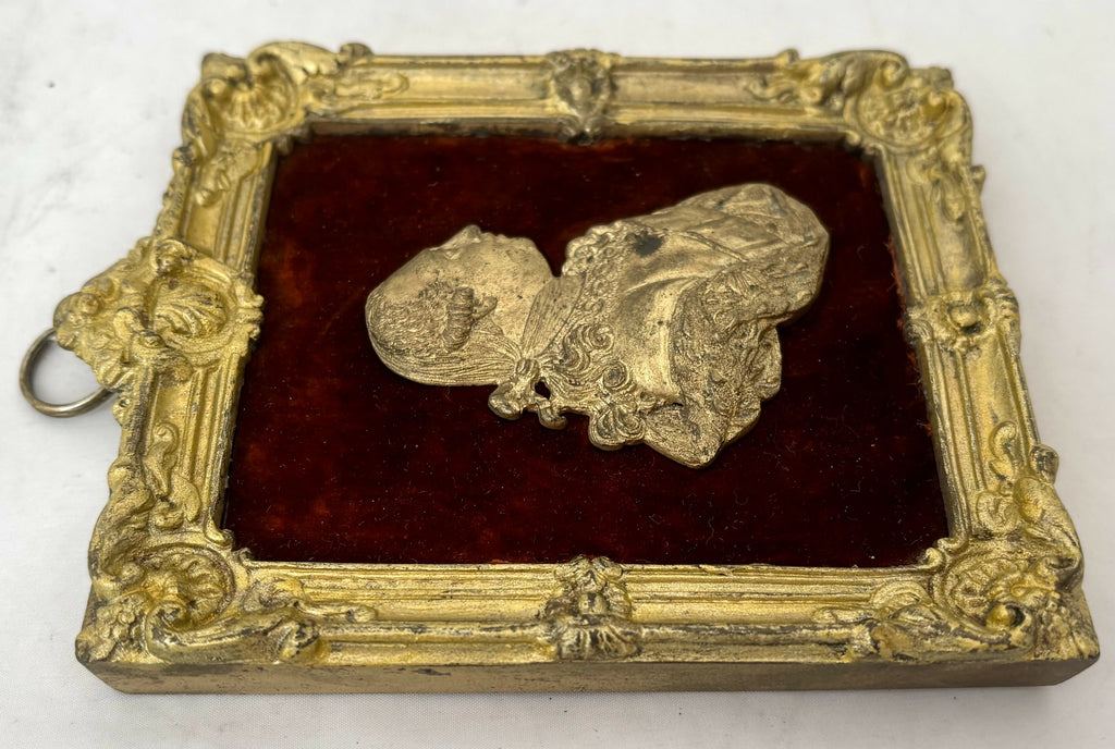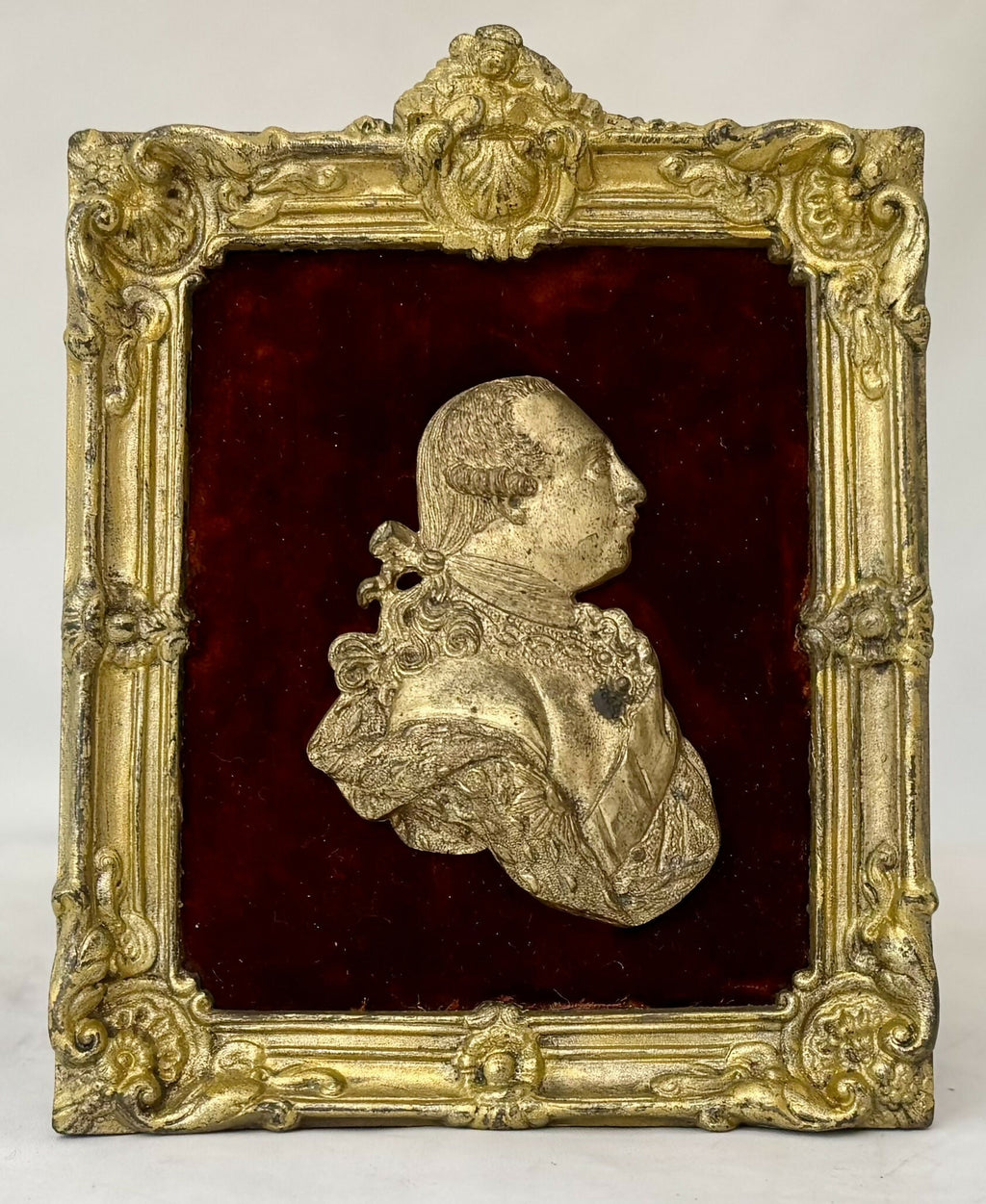 George III, An Early 19th Century Gilt Metal Portrait Profile Bust. Mounted on Velvet in Contemporary Gilt Frame.