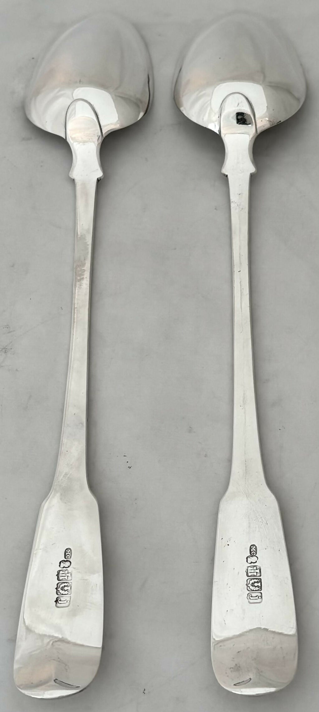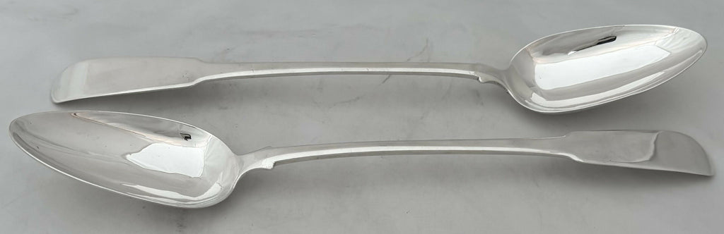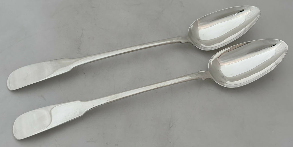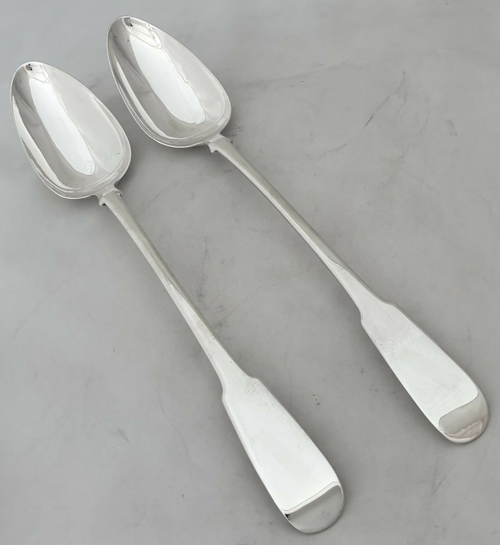 A George III Pair of Scottish Silver Oar Pattern Basting Spoons.