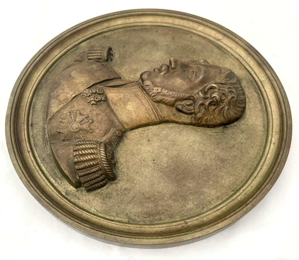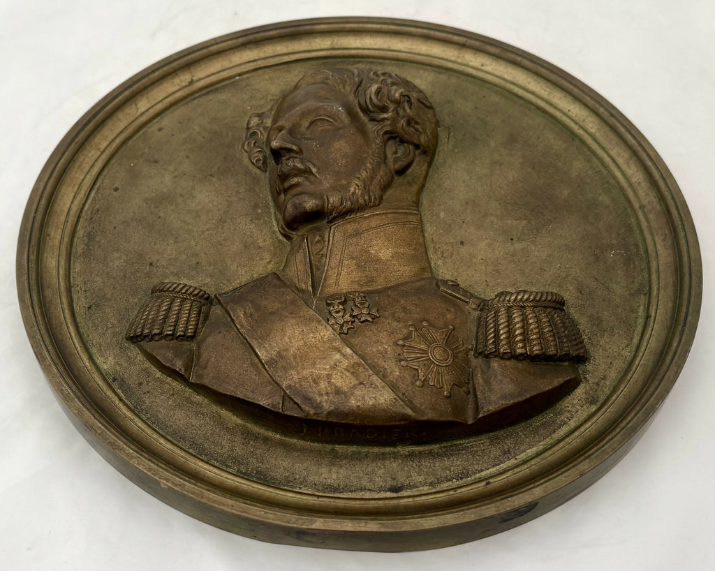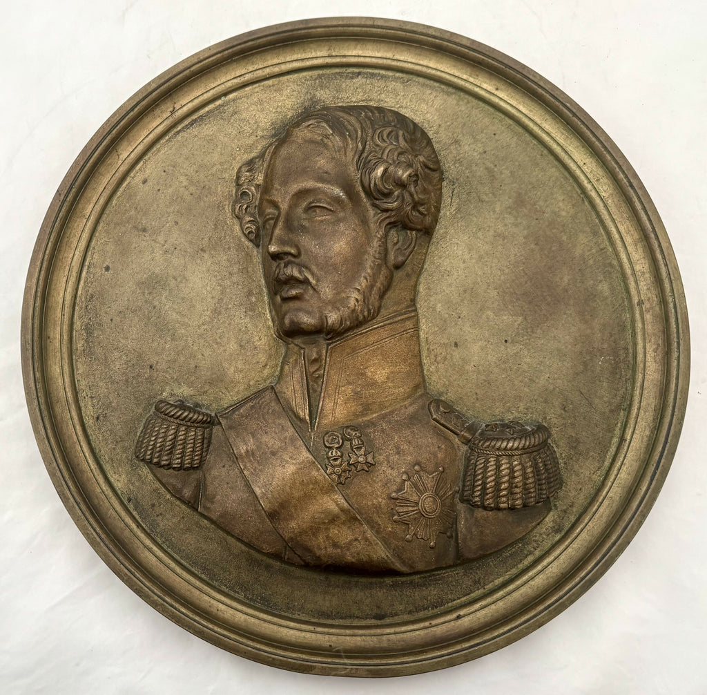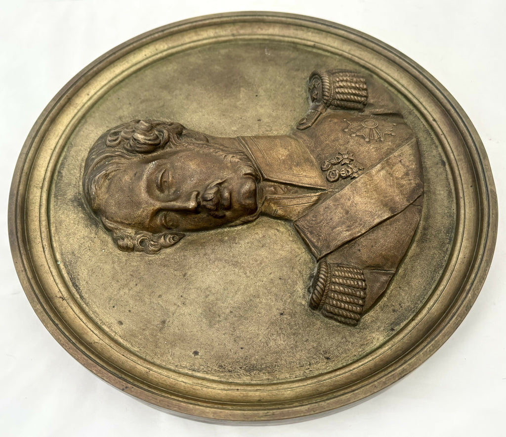 Prince Ferdinand Philippe, Duc d'Orléans, Gilt Bronze Portrait Profile Plaque in Relief. Simonet Foundry, Paris. After James Pradier. Mid 19th century.