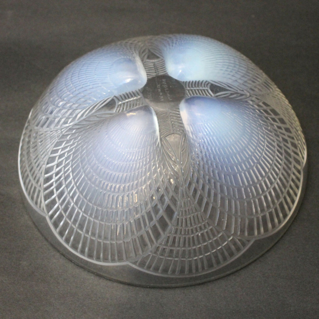 This is an original René Lalique “Coquilles” (Shells) bowl, moulded in clear/opalescent glass, that dates to c1924. The design features scallop shells with a very art deco feel. The model number is #3201.