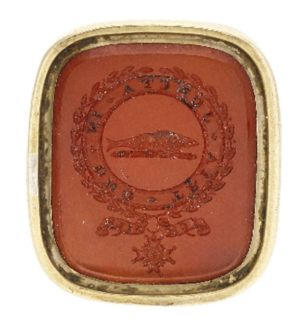 Vice-Admiral Sir Charles Vinicombe Penrose, GCMG KCB RN Carnelian Inset Gold Fob Seal.