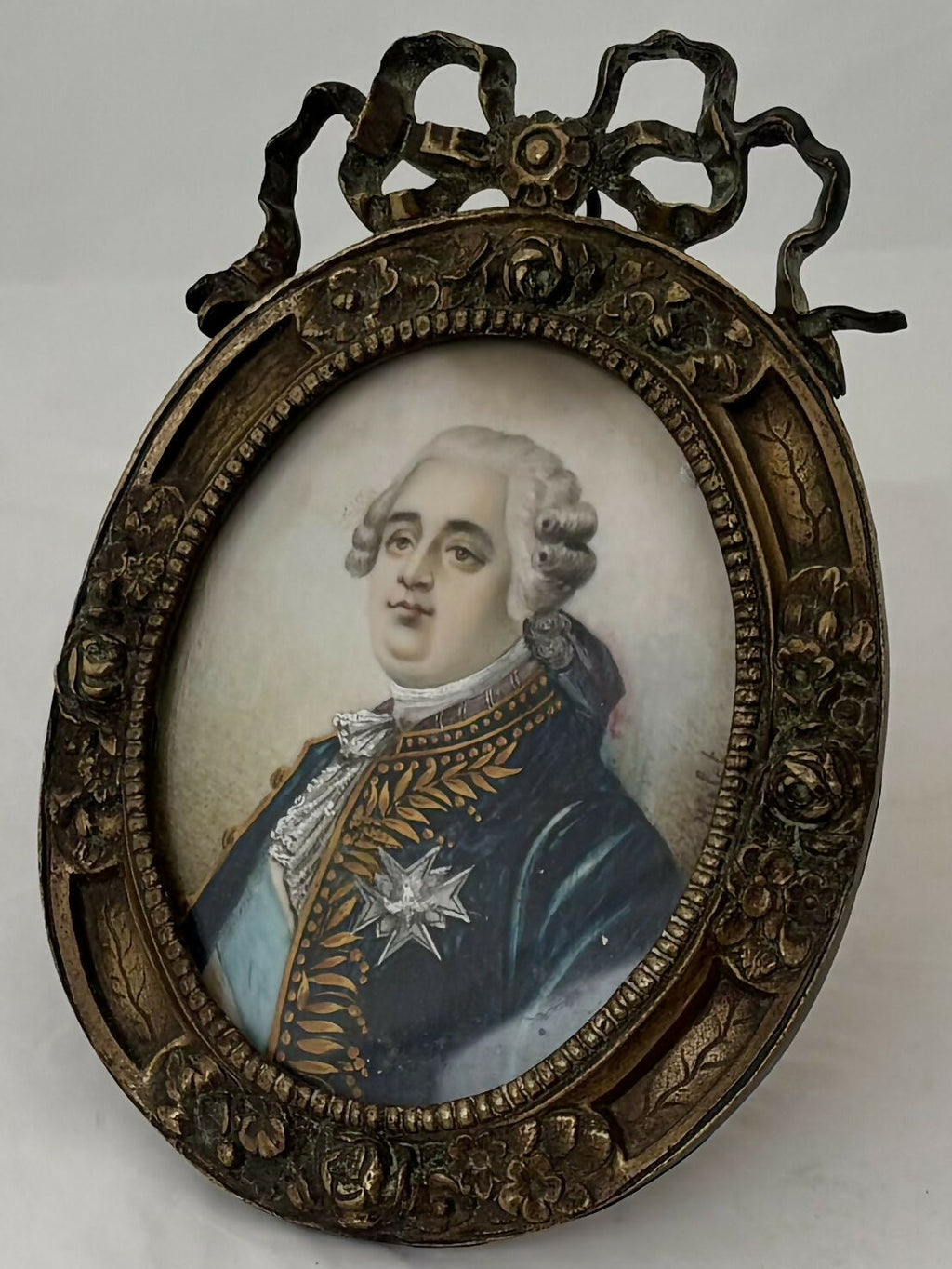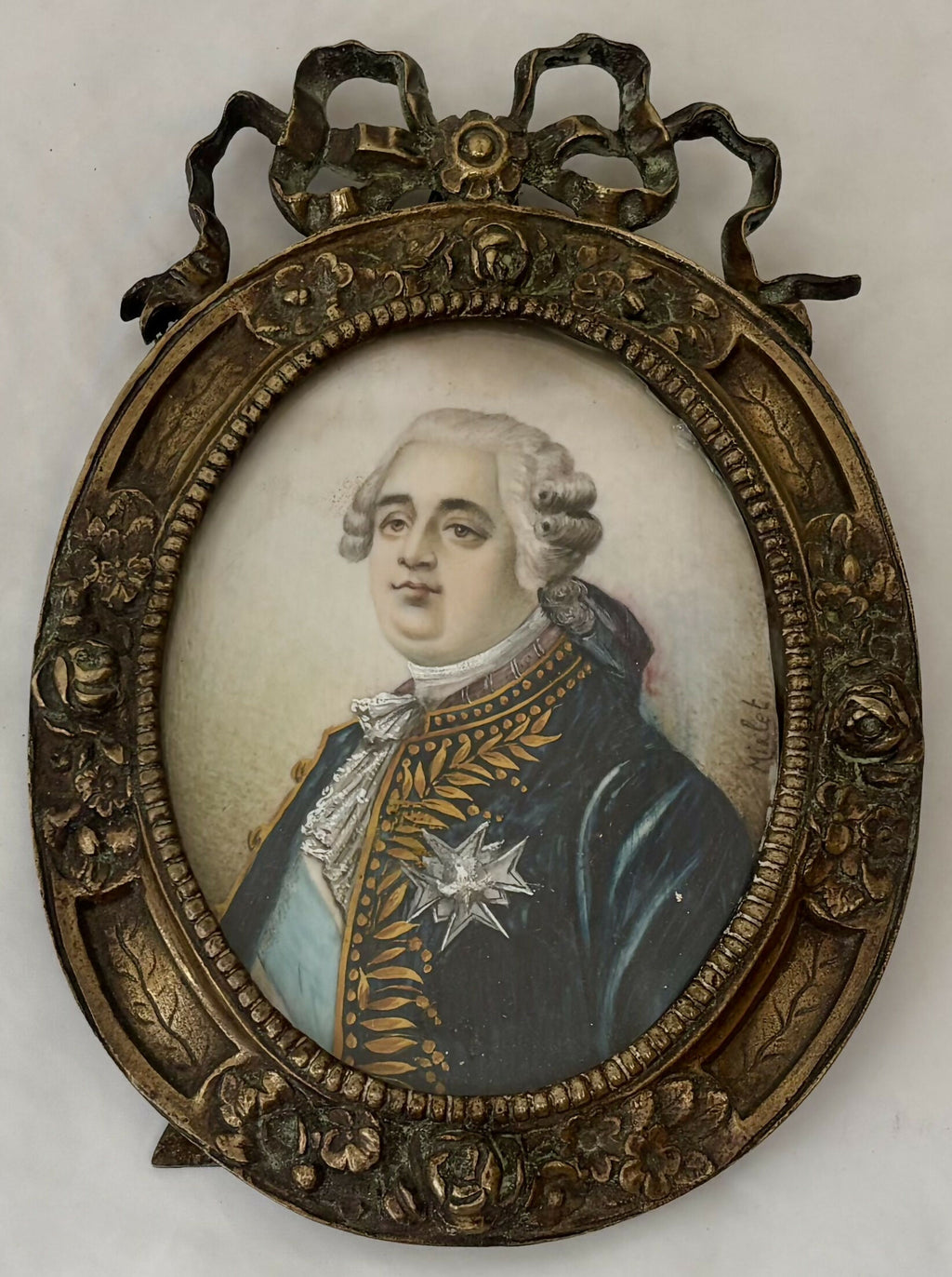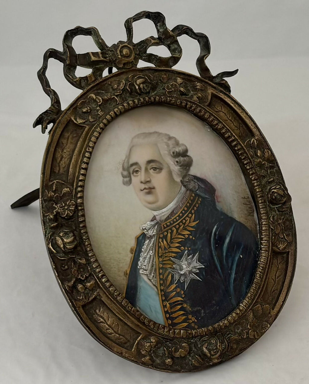 Louis XVI Portrait Miniature on Ivory & in a Gilt Metal Frame, 19th Century French School, Signed Mirlet.