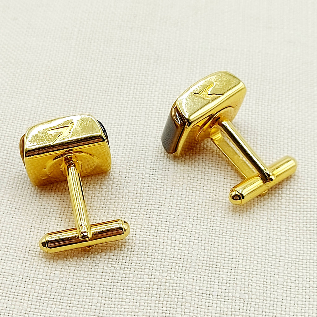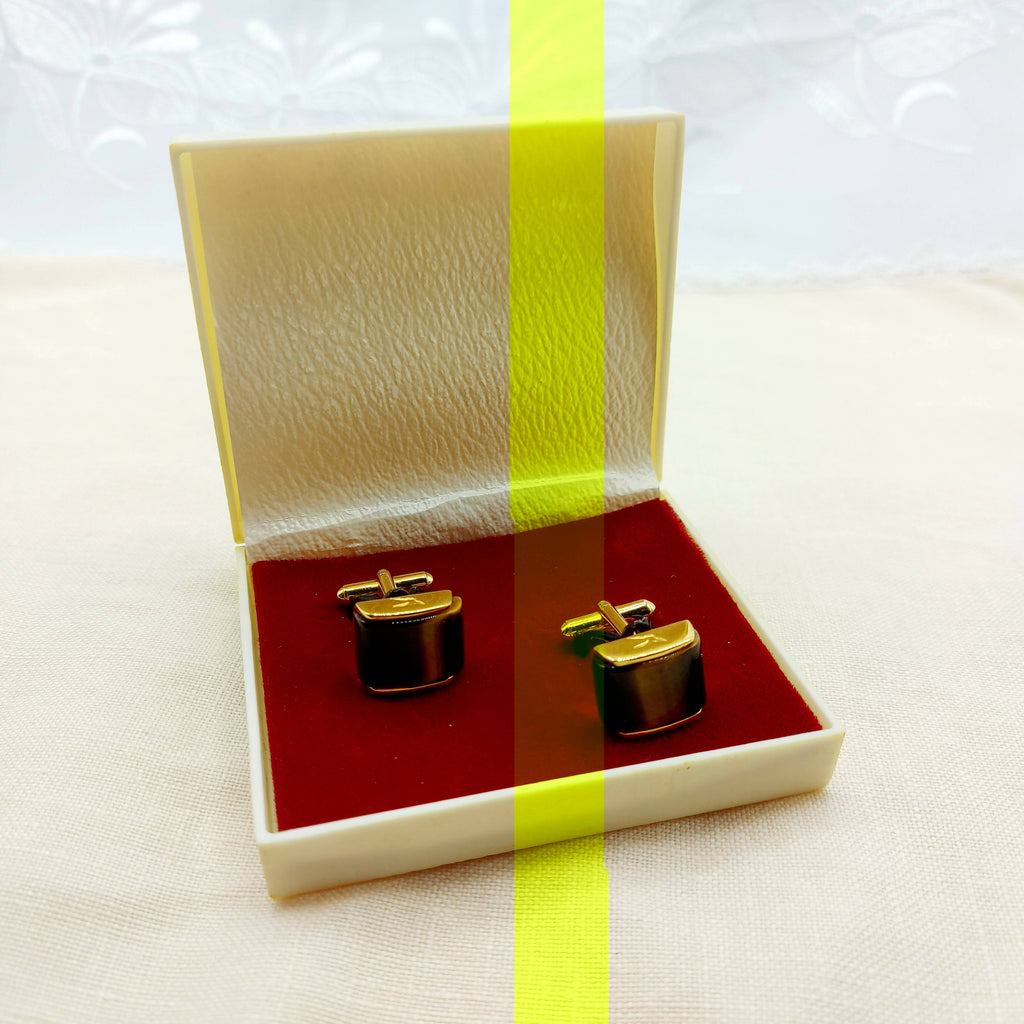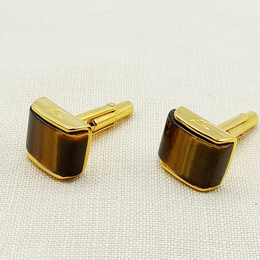 A delightful pair of vintage Springbok Tiger's Eye Agate, gold plated cufflinks. They come in their original box with the Springbok logo on top. The logo is also imprinted on each cufflink.
