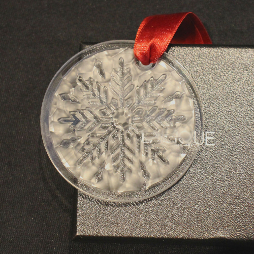Each year Lalique produces different Christmas ornament designs. The 2025 design is a snowflake. The decoration is available in clear and gold crystal. This listing is for the clear decoration.