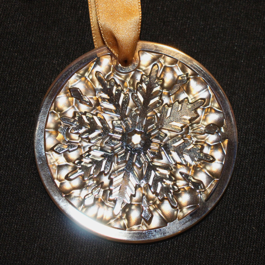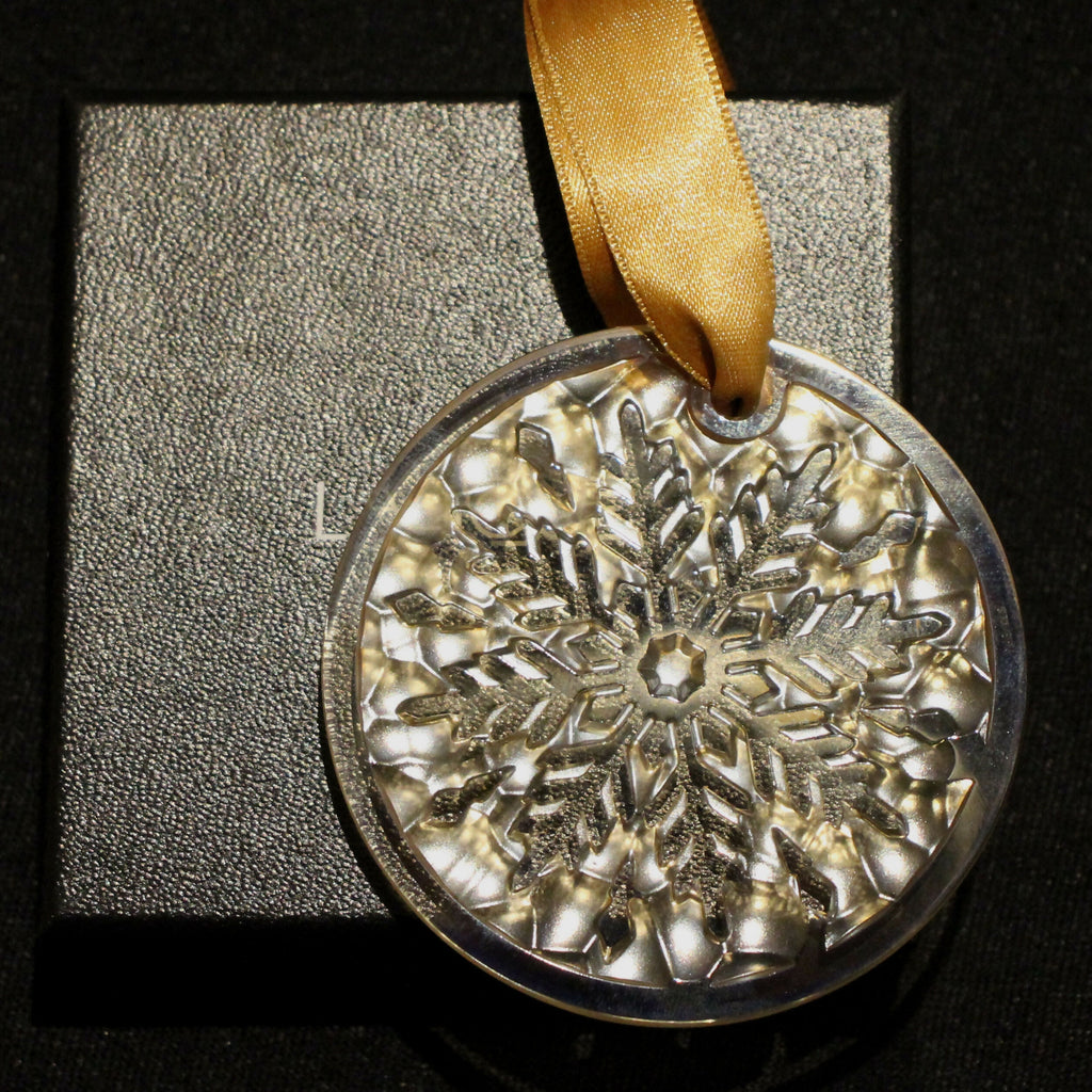 Each year Lalique produces different Christmas ornament designs. The 2025 design is a snowflake. The decoration is available in clear and gold crystal. This listing is for the gold lustre decoration.