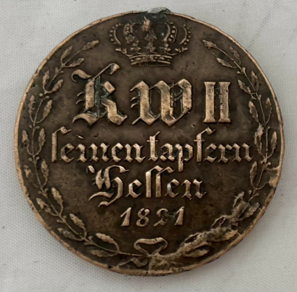 The reverse with the initials of Kaiser Wilhelm II and an inscription, 'Seinen tapfern Hessen 1821' (His brave Hesse).