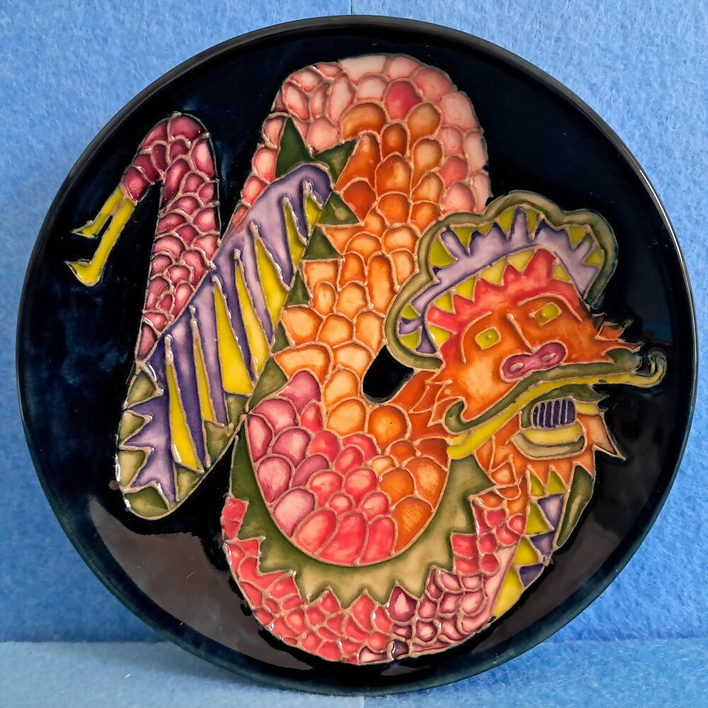A Moorcroft pin dish with a very rare Chinese Dragon style design.