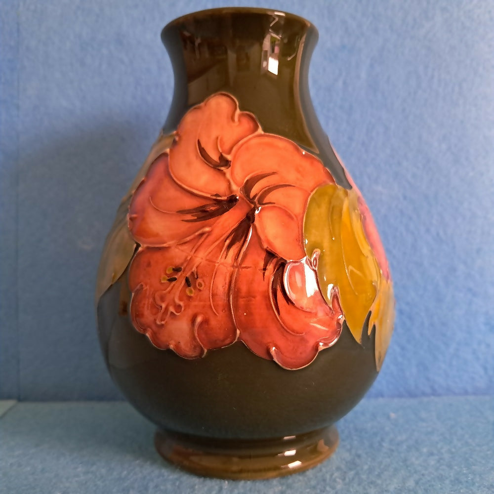 A vintage Moorcroft vase in the Hibiscus pattern by Walter Moorcroft.
