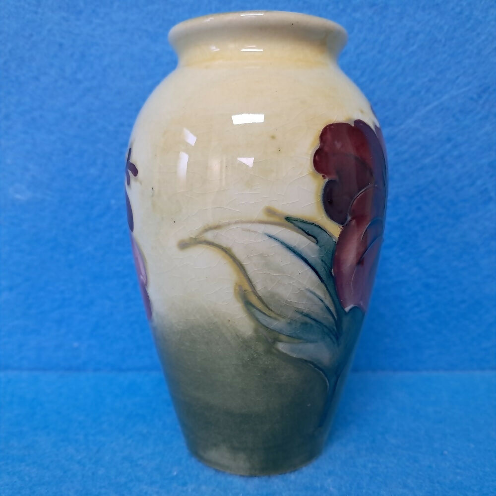 A vintage Moorcroft vase in the Hibiscus pattern by Walter Moorcroft.