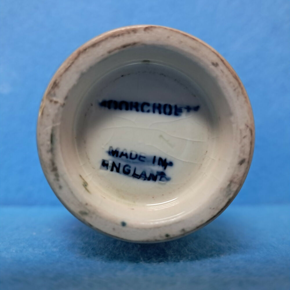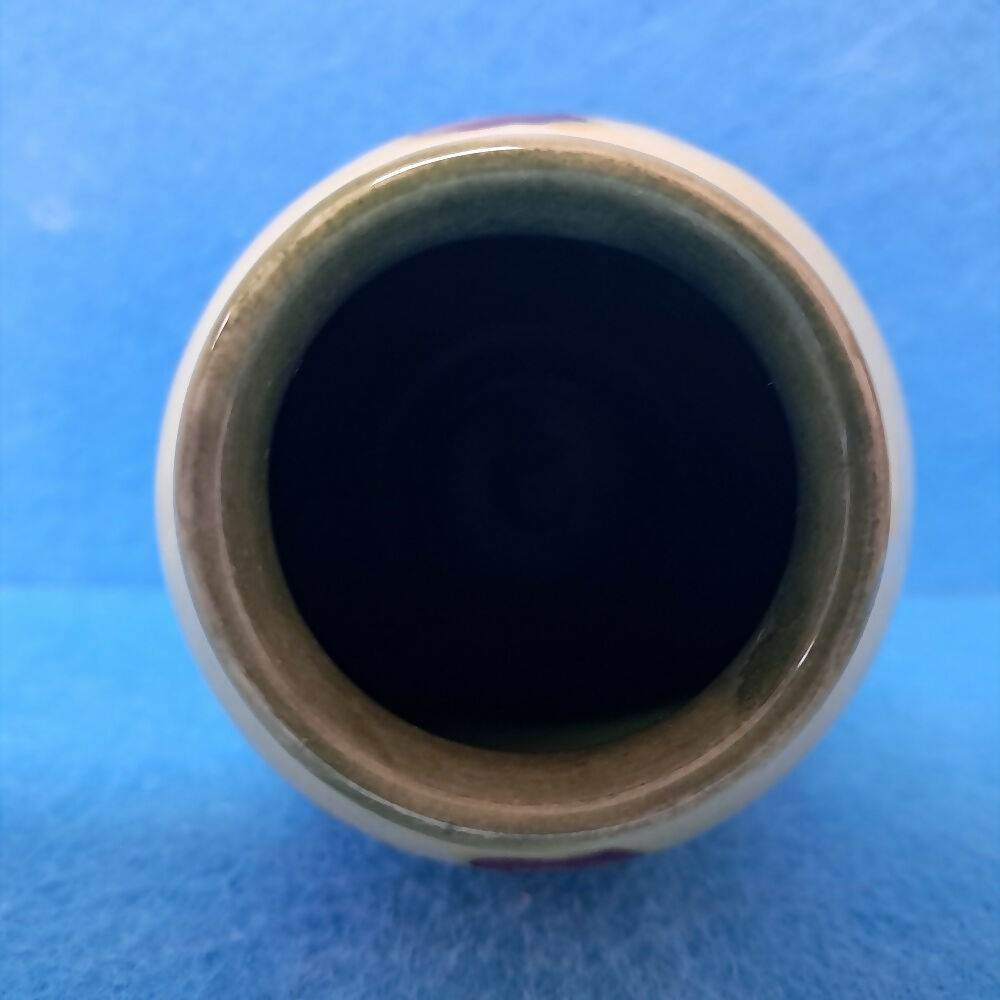 There is the faint crazing often present on these older pieces of Moorcroft pottery. Interestingly, on their website Moorcroft advise their pottery is made from porous earthenware and crazing is just part of the normal ageing process. They talk about how this natural crazing is used by antiques salerooms to help establish the vintage of an item, and identify any restoration.