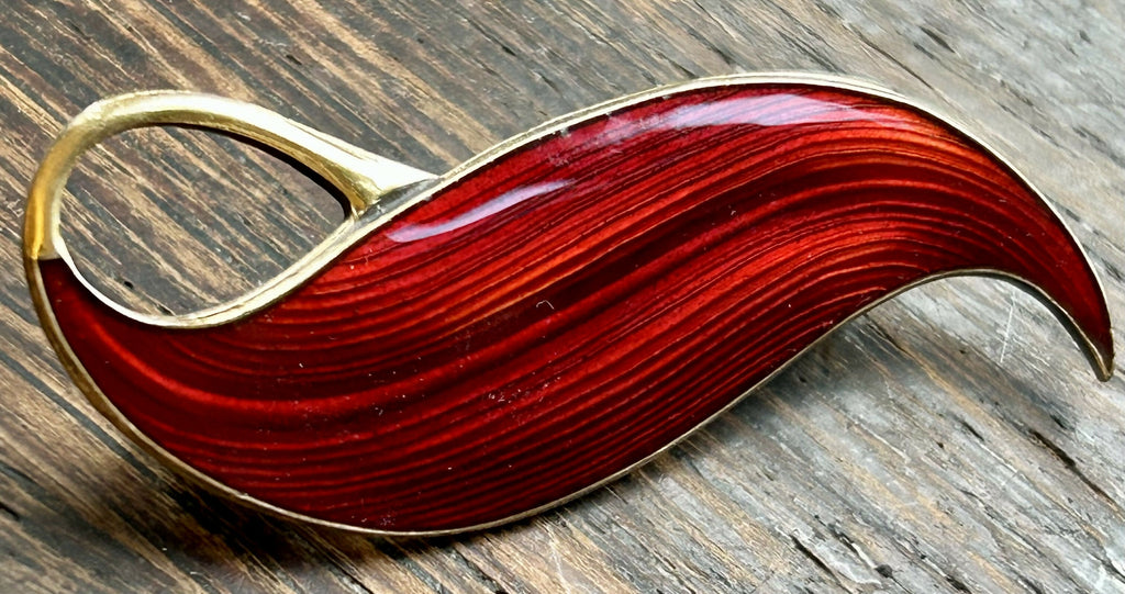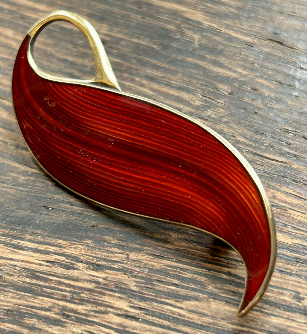 Modern Mid Century Norwegian Finn Jensen Sterling Silver Gilt Ox Blood Red Enamel Leaf Brooch