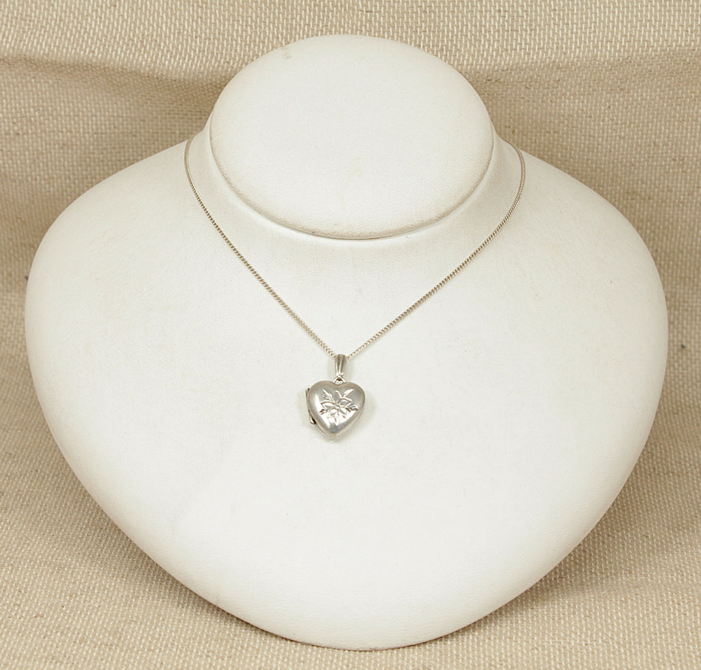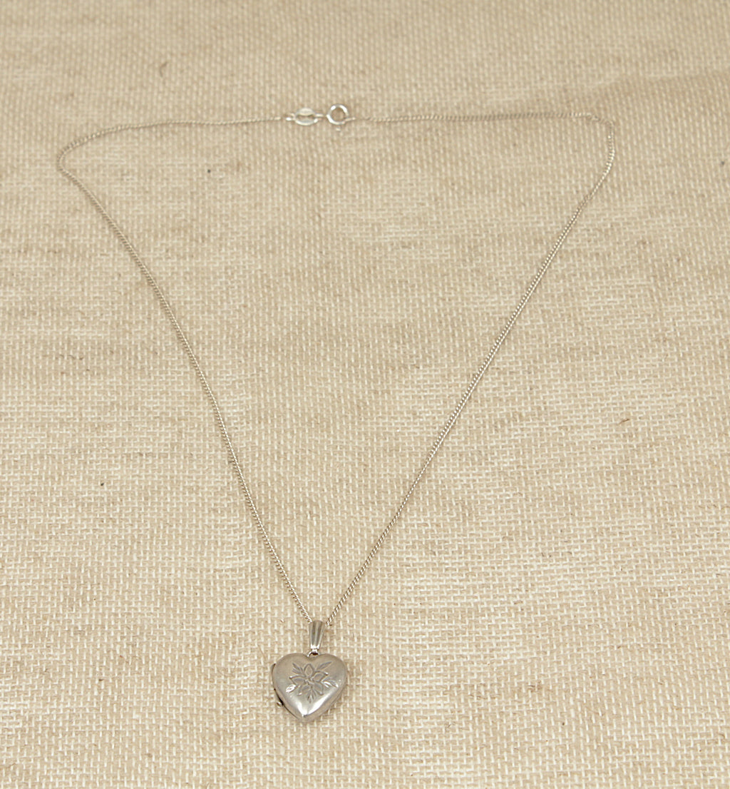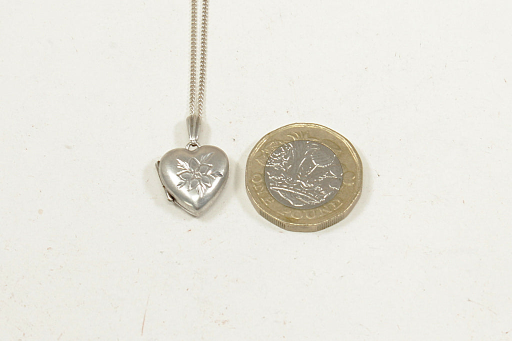 This lovely vintage Sterling Silver heart locket features space for two photographs and an attractively etched floral-inspired design on the front, adding delicate character and charm. The locket carries Birmingham hallmarks for 1979 along with the maker’s mark HG & S Ltd, confirming its authenticity.