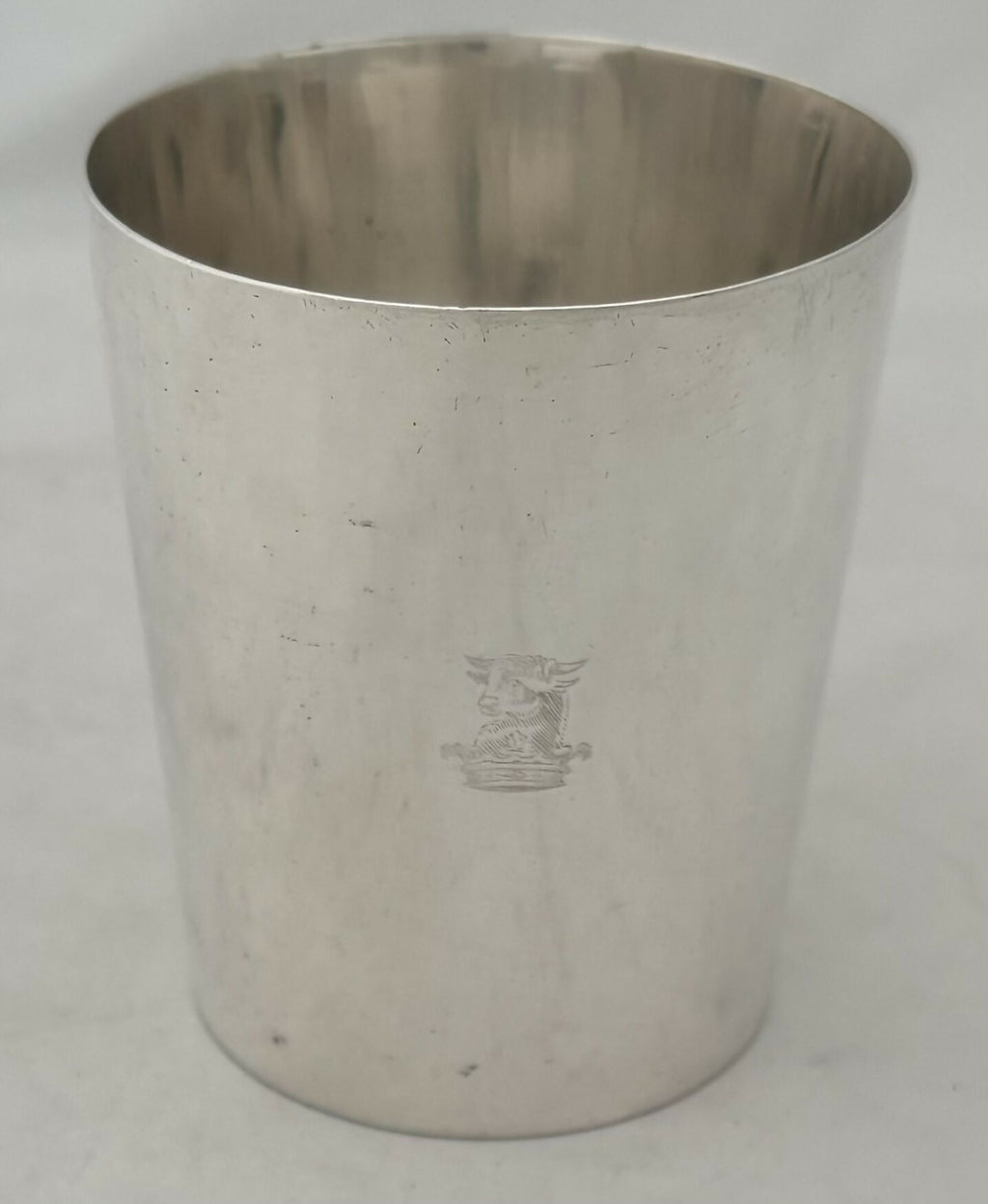 19th Century Silver Plated Beaker. Marked to the underside for Thomas’s, 153 New Bond Street, London. Crested with a bull's head emerging from a coronet.