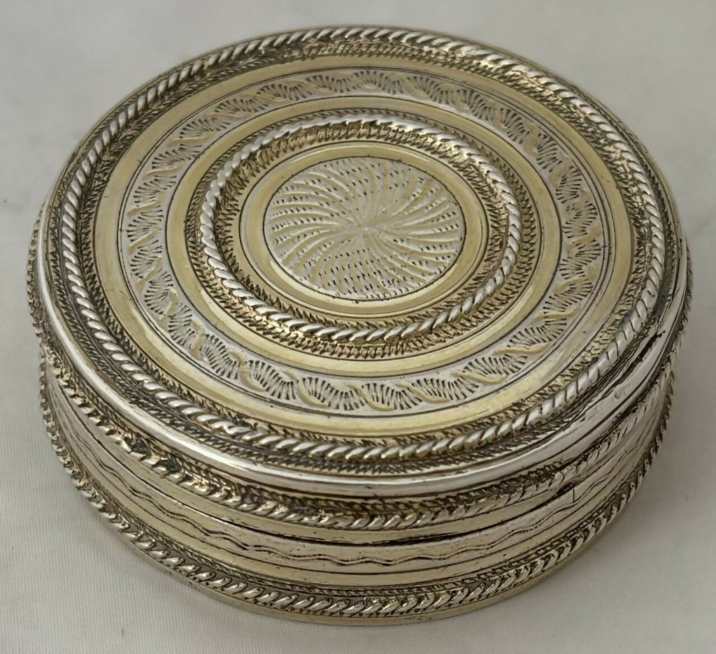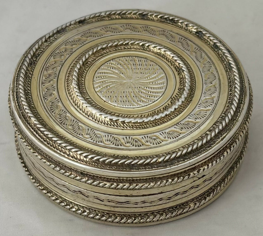 Venice, Circa 1790, Circular Snuff Box with Rope Twist Borders and Engine Turned Detail.