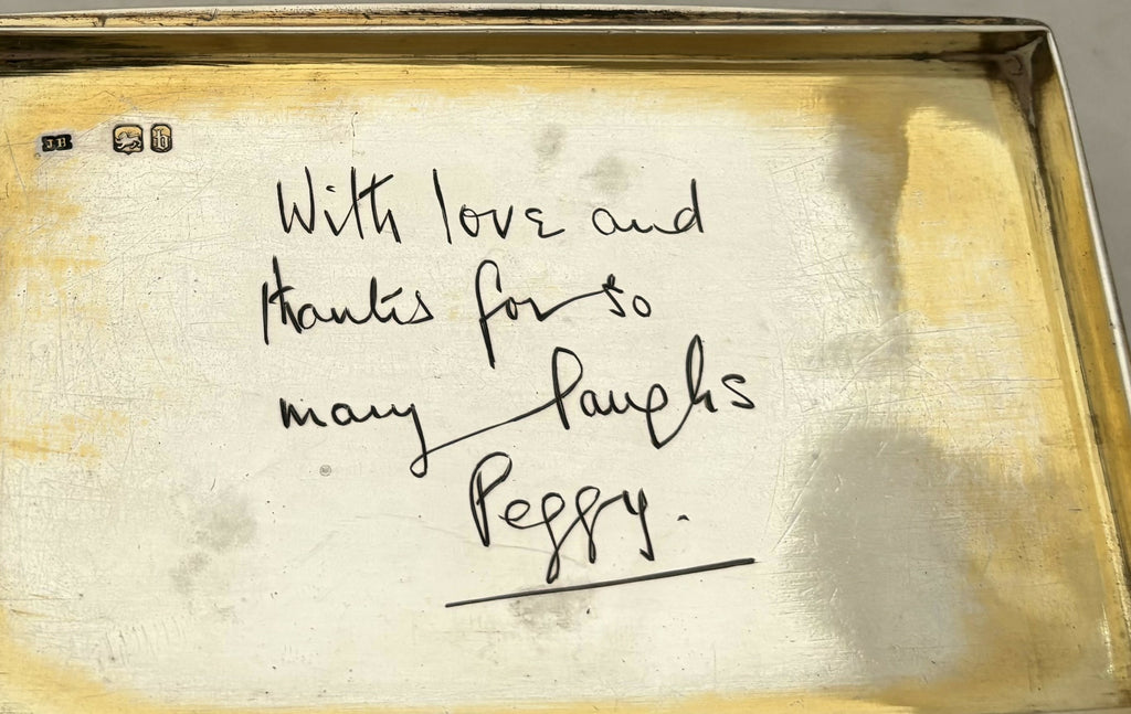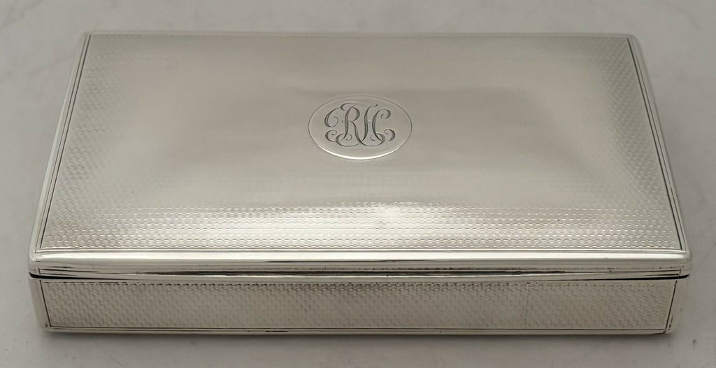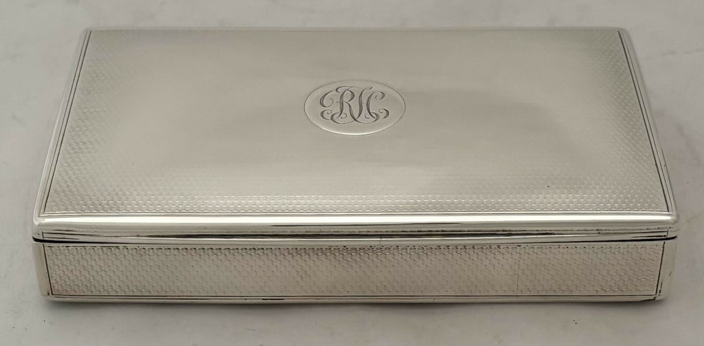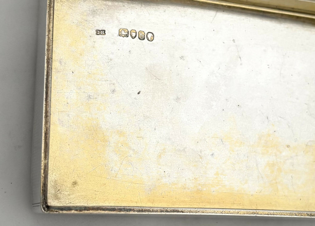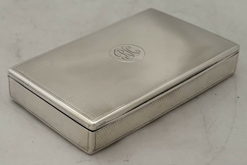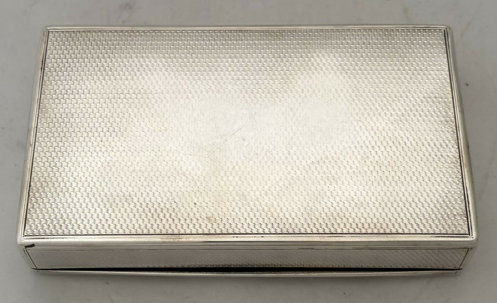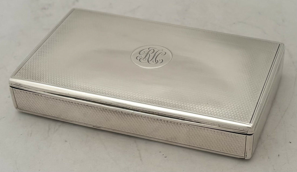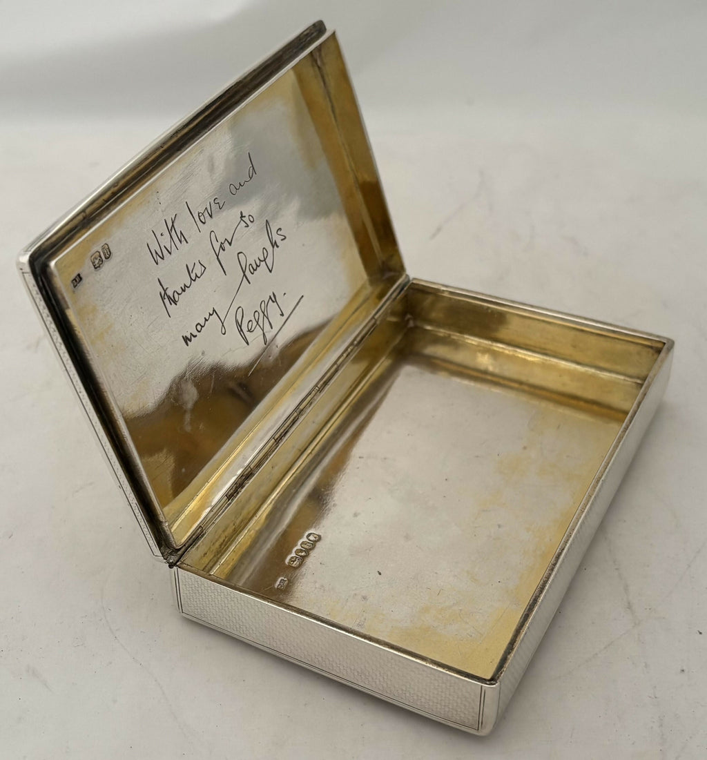 Victorian Silver Table Snuff Box. The gilded interior with a later inscription. The exterior with engine turned detail and monogram on a raised disc.