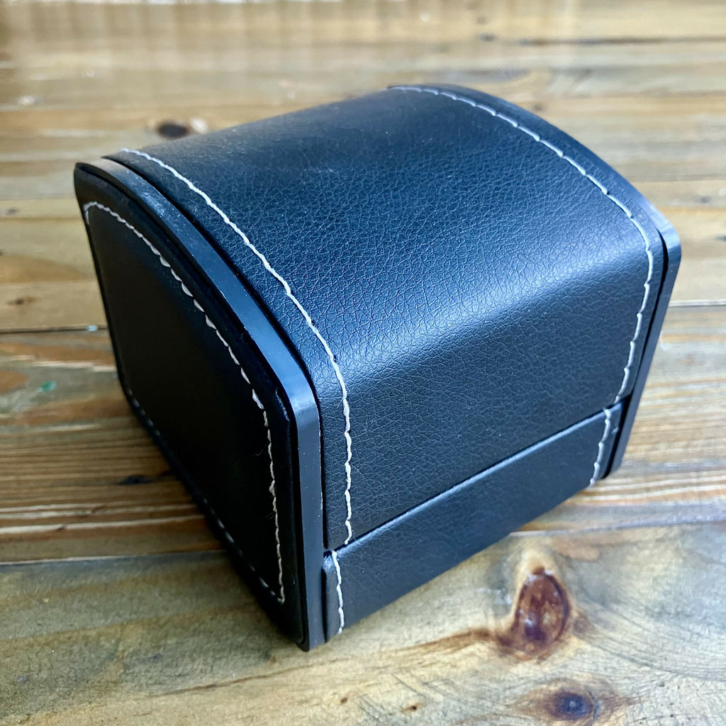 The watch comes with a display box.